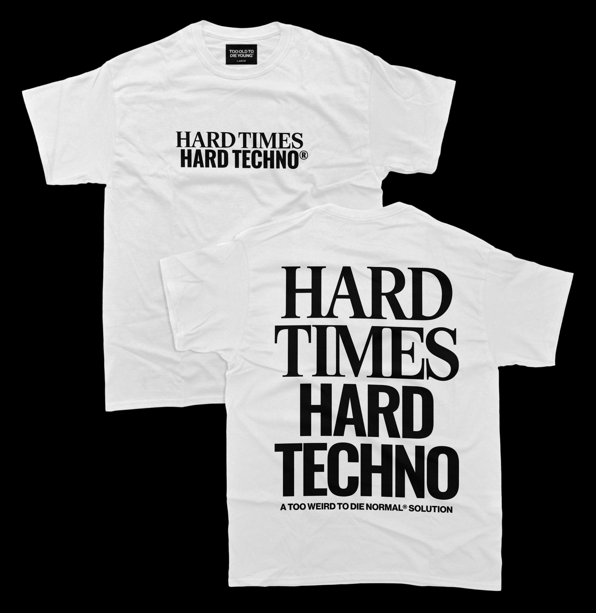 Hard Times Hard Techno. Screenprinted on heavy 100% ringspun cotton. Graphic on both sides.